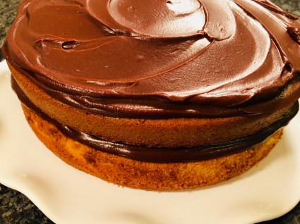 No workouts on the extended weekend and I ate too much cake. We made a new gf chocolate cake for my husband’s birthday and it was delicious. We have a chocolate and zucchini cake recipe that we like but we had no zucchini this time. This recipe will be our new go-to chocolate cake recipe. Our backup / runner up is gf chocolate cake mix from King Arthur Flour Company which you can buy locally or via mail order. We also made homemade buttercream frosting. Here’s a pic!